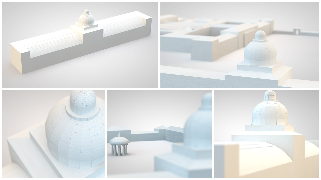 Visualisierung Münchner Bauten aus gefaltetem Papier in Cinema 4D.